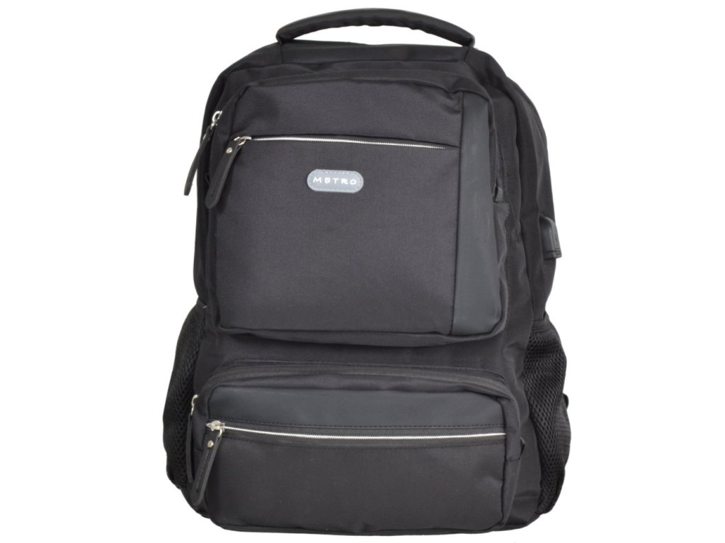 Batoh z kolekce METRO je ideálním batohem pro každodenní použití, nabízí dostatek místa pro knihy, dokumenty (A4) a notebook.Pohodlné nastavitelné ramenní popruhy v kombinaci s polstrovanými zády zajišťují maximální pohodlí při nošení. Batoh má jeden hlavní prostor, na přední straně čtyři menší kapsy a kapsy na bocích vhodné např. pro láhev, skladací deštník. Uvnitř batohu je polstrovaný úložný prostor pro notebook. Batoh je vybaven speciálním popruhem na zadní straně, díky němuž ho můžete připevnit přes výsuvné madlo kufru.Batoh je vybaven vestavěným USB nabíjecím portem na vnější straně, takže můžete snadno nabíjet svá mobilní zařízení na cestách. Jednoduše vložte svůj vlastní powerpack do vnitřní kapsy (powerpack není součástí dodávky) a pomocí dodaného USB kabelu jej připojte k portu. K nabíjení zařízení pak můžete použít vlastní nabíjecí kabel, aniž byste museli po kapsách tahat těžký powerpack.