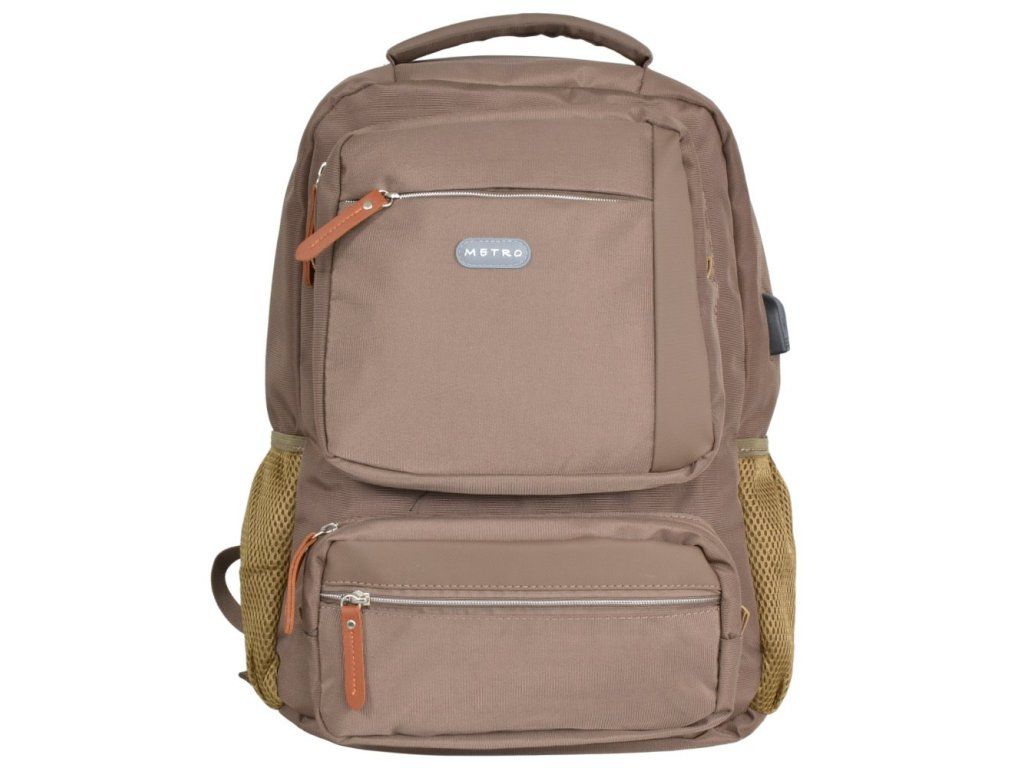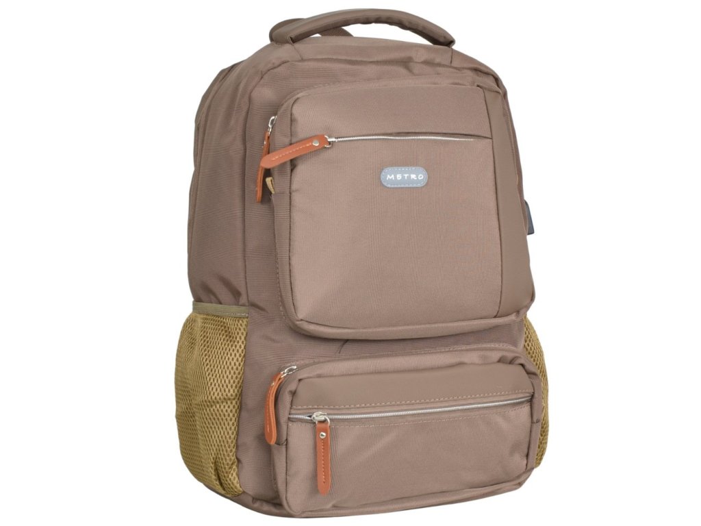 Batoh z kolekce METRO je ideálním batohem pro každodenní použití, nabízí dostatek místa pro knihy, dokumenty (A4) a notebook.Pohodlné nastavitelné ramenní popruhy v kombinaci s polstrovanými zády zajišťují maximální pohodlí při nošení. Batoh má jeden hlavní prostor, na přední straně čtyři menší kapsy a kapsy na bocích vhodné např. pro láhev, skladací deštník. Uvnitř batohu je polstrovaný úložný prostor pro notebook. Batoh je vybaven speciálním popruhem na zadní straně, díky němuž ho můžete připevnit přes výsuvné madlo kufru.Batoh je vybaven vestavěným USB nabíjecím portem na vnější straně, takže můžete snadno nabíjet svá mobilní zařízení na cestách. Jednoduše vložte svůj vlastní powerpack do vnitřní kapsy (powerpack není součástí dodávky) a pomocí dodaného USB kabelu jej připojte k portu. K nabíjení zařízení pak můžete použít vlastní nabíjecí kabel, aniž byste museli po kapsách tahat těžký powerpack.