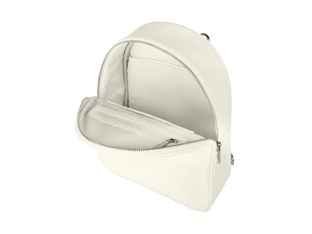 Chcete vyrazit na cesty stylově, minimalisticky trendy a zcela v módě? Tento batoh z naší kolekce Fabulous Fifties pak nemůžete ignorovat. Tento batoh je vyroben z udržitelné umělé kůže a je dodáván se dvěma odnímatelnými krémově bílými popruhy. Chcete jej nosit jako crossbody místo batohu? Žádný problém. Připojte pouze jeden popruh na přenášení, upravte jej na správnou velikost a jste připraveni vyrazit (délka nosného popruhu max. 75 cm). Super šikovný! Navzdory své skromné velikosti nabízí tento batoh spoustu úložného prostoru pro vaše osobní věci, včetně tabletu nebo iPadu. Uvnitř vpředu najdete odkládací přihrádku pro telefon a praktickou uzamykatelnou přihrádku na klíče nebo karty, abyste při hledání nemuseli procházet celou taškou. Vaše nejcennější věci mohou být také uloženy v bočních kapsách umístěných na zadní straně tašky. Tímto způsobem je nosíte blízko sebe a nikdo je nebude moci odcizit.• materiál: vyrobeno z udržitelné veganské kůže (PU) • rozměr: 30 x 25 x 9 cm • objem: 7 l • hmotnost: 0,5 kg • doporučená nosnost 5 kg• lze nosit jako batoh nebo crossbody• nastavitelné a pohodlné popruhy• hladký stříbrný zip• prostorný interiér se speciální kapsou pro tablet / iPad• dvě praktické přihrádky na přední straně pro váš telefon, klíče nebo karty• vzadu bezpečnostní kapsa