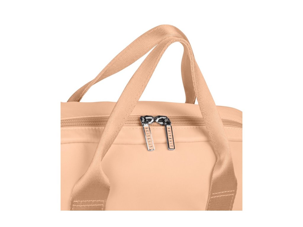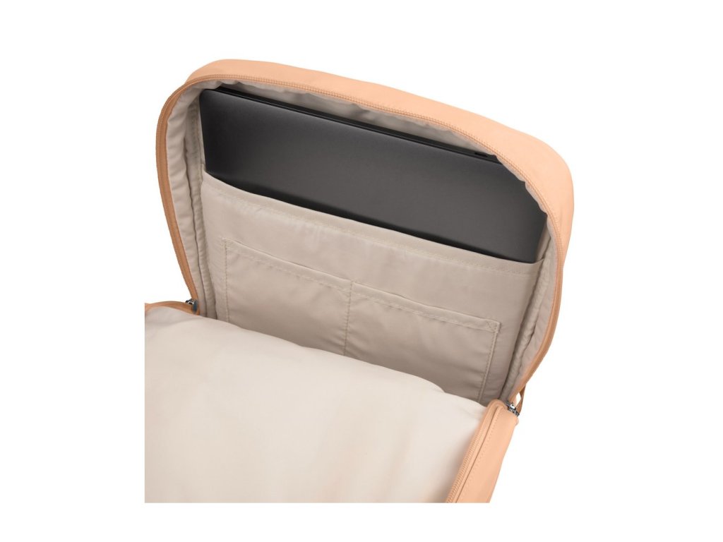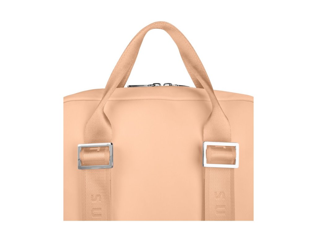 Batoh má nahoře dvě držadla , tahače zipů v barvě batohu, široký popruh na zádech pro umístění batohu na výsuvné držadlo vašeho kufru. Uvnitř batohu je prostorný úložný prostor pro 13 ”notebook a dvě menší kapsy pro váš telefon.