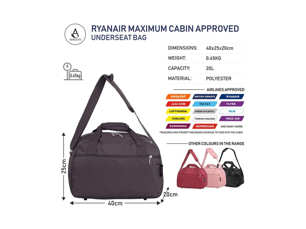 Taška splňuje rozměry (40x25x20 cm) pro druhé kabinové zavazadlo dle nových požadavků (pro rok 2019/2020) leteckých společností.