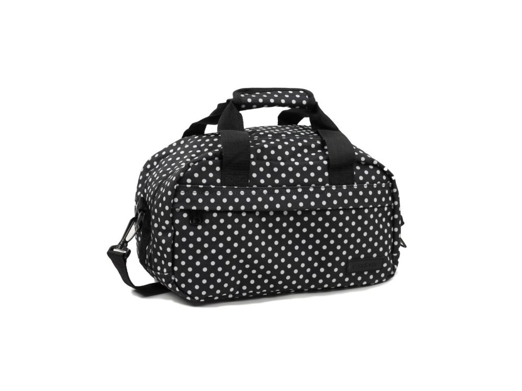 Taška má nastavitelný odnímatelný popruh přes rameno. Na zadní straně tašky je umístěn popruh sloužící jako držák na výsuvné madlo cestovního kufru.
