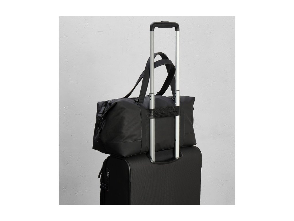 Hlavní prostor je uzavíratelný zipem. Uvnitř tašky je kapsa na zip pro větší bezpečnost a polstrovaná kapsa na notebook. Taška má nastavitelný odnímatelný popruh přes rameno. Na zadní straně tašky je umístěn popruh sloužící jako držák na výsuvné madlo cestovního kufru.