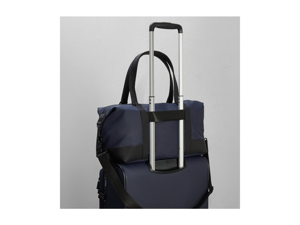Hlavní prostor je uzavíratelný zipem. Uvnitř tašky je kapsa na zip pro větší bezpečnost a polstrovaná kapsa na notebook. Taška má nastavitelný odnímatelný popruh přes rameno. Na zadní straně tašky je umístěn popruh sloužící jako držák na výsuvné madlo cestovního kufru.