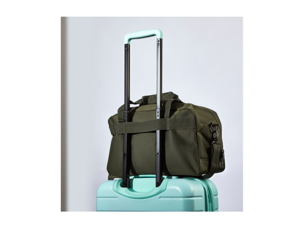 Madla je možné spojit textilní spojkou se suchým zipem pro pohodlné uchopení a nošení. Nastavitelný odnímatelný popruh přes rameno. Na zadní straně tašky je umístěn popruh sloužící jako držák na výsuvné madlo cestovního kufru.