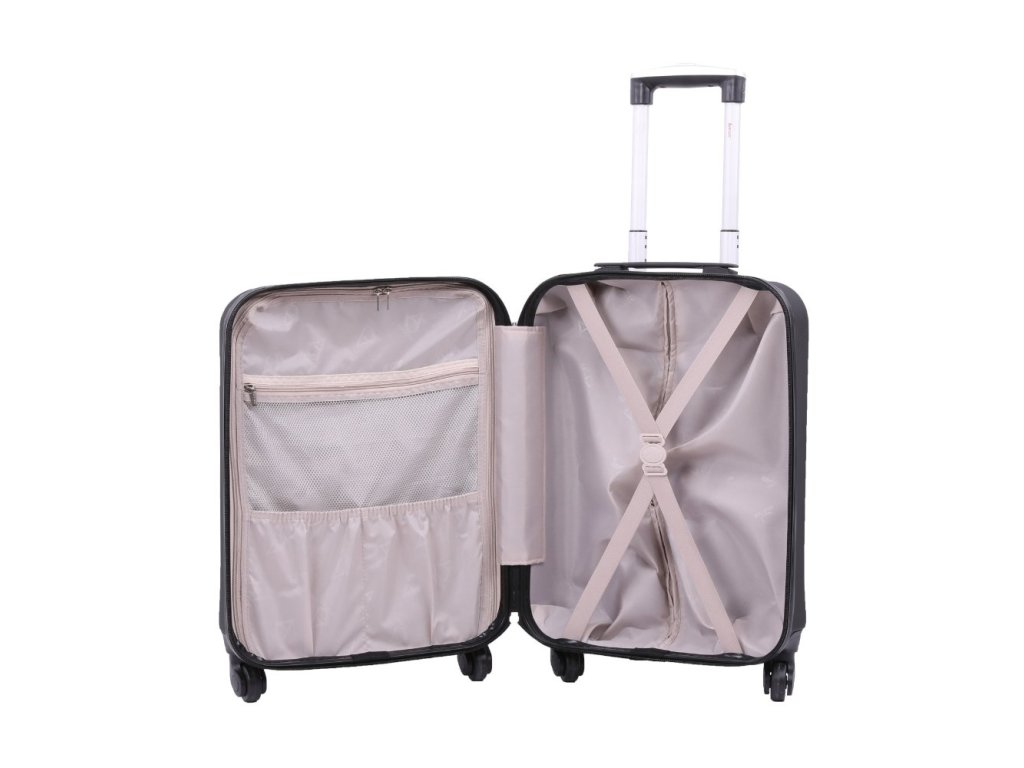 Kufr je uzavíratelný zipem. Oba jezdce zipu mají očko pro pohodlné nasazení kódového nebo klíčového zámku. Horní madlo je plastové. Celý pojízdný systém je umístěn uvnitř kufru pod textilní podšívkou, aby nedošlo k poškození systému při přepravě a je opatřen čtyřmi kolečky otočnými o 360°. Vnitřek kufru lze rozdělit pomocí textilní přepážky. Tato velikost kufru je většinou leteckých společností akceptována jako kabinové zavazadlo. Cena je uvedena za 1ks zobrazené velikosti S. • velikost S (small) - kabinové zavazadlo • materiál: ABS• vnitřní rozměr: 48,5 x 38 x 20 cm • vnější rozměr: 55 x 38 x 20 cm = výška kufru včetně koleček a horního madla • objem: 37 l • hmotnost: 2,7 kg • doporučená nosnost 10 kg • lehká konstrukce • teleskopický výsuvný systém • kolečka otočná o 360°• kódový zámek