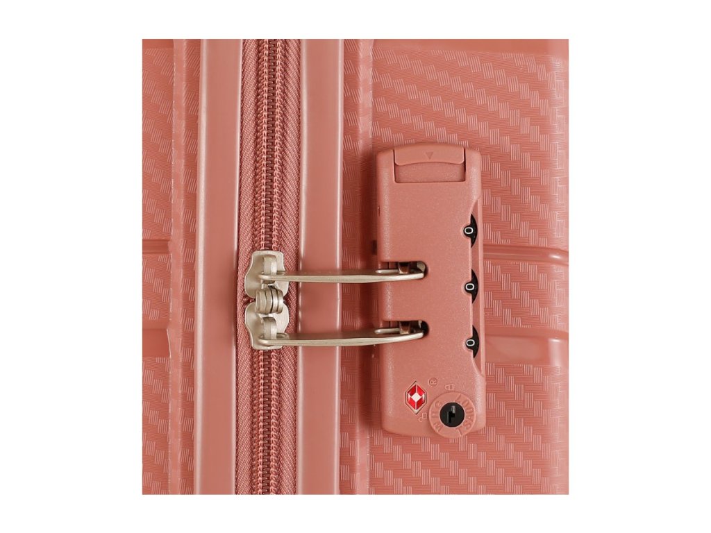 Kufr je uzavíratelný zipem, oba jezdce zipu se dají zapojit do TSA zapuštěného kódového zámku. Horní madlo je plastové. Má lehký teleskopický výsuvný systém, prostor na víku oddělený textilní přepážkou, vnitřní kapsu a jistící popruhy.