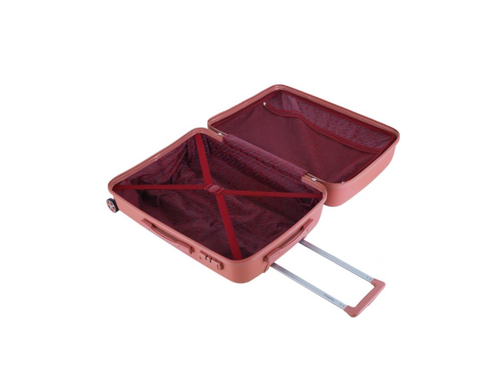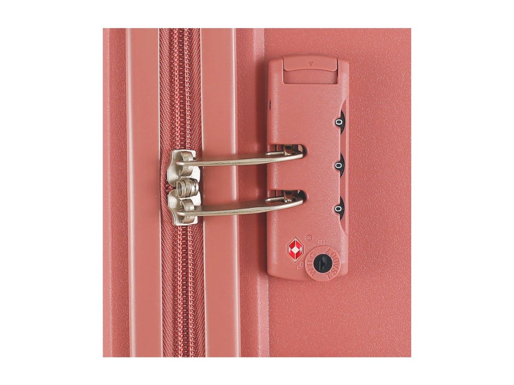 Kufr je uzavíratelný zipem, oba jezdce zipu se dají zapojit do TSA zapuštěného kódového zámku. Horní madlo je plastové. Má lehký teleskopický výsuvný systém, prostor na víku oddělený textilní přepážkou, vnitřní kapsy a jistící popruhy.