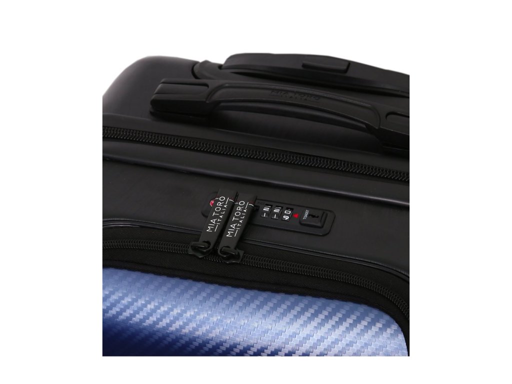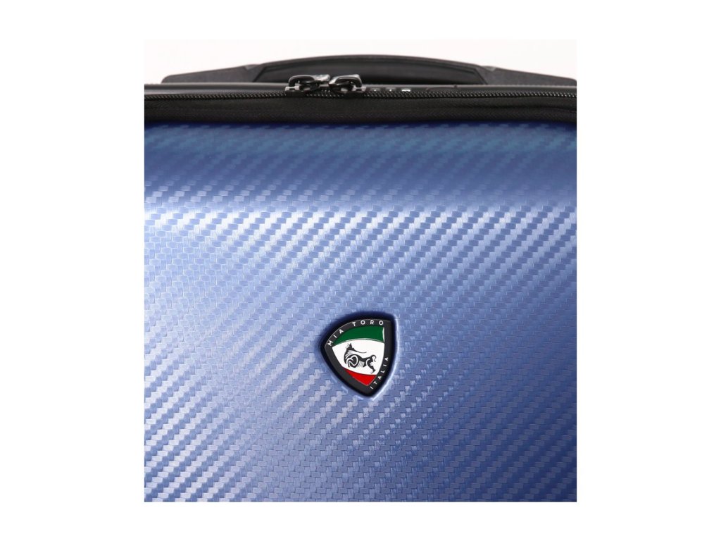 Cestovní kufr z kolekce MIA TORO Carbonio Superior.Kufry Carbonio Superior mají elegantní nadčasový design karbonu. Kolekce byla navržena v Itálii, kombinuje nejvyšší kvalitu, funkce a design pro moderní cestovatele.Kufr je uzavíratelný zipem. Oba jezdce zipu se dají zapojit do TSA zapuštěného kódového zámku. U kufru lze pomocí druhého zipu zvětšit vnitřní objem. Horní madlo je plastové. Tato velikost kufru nemá boční madlo. Má lehký teleskopický výsuvný systém, textilní přepážku s kapsami a jistící popruhy.Celý pojízdný systém je umístěn uvnitř kufru pod textilní podšívkou, aby nedošlo k poškození systému při přepravě a je opatřen čtyřmi dvojitými kolečky otočnými o 360°.