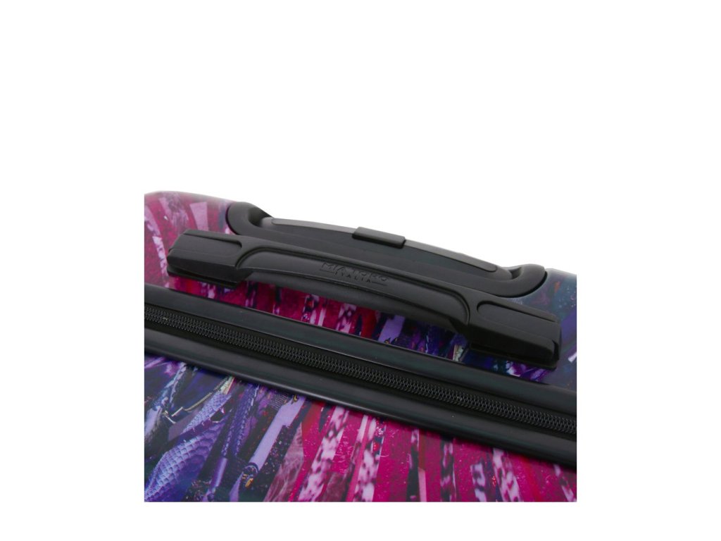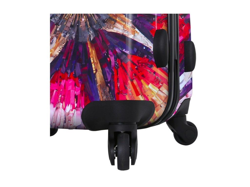Cestovní kufr z kolekce MIA TORO Spider Eye.Kolekce Spider Eye je revolučním spojením kvalitního kufru a umění. Se značkou Mia Toro cestujete podle posledních módních trendů.Kufr je uzavíratelný zipem. Oba jezdce zipu se dají zapojit do TSA zapuštěného kódového zámku. U kufru lze pomocí druhého zipu zvětšit vnitřní objem. Horní madlo je plastové. Tato velikost kufru nemá boční madlo. Má lehký teleskopický výsuvný systém, prostor na víku a vnitřní kapsy.Celý pojízdný systém je umístěn uvnitř kufru pod textilní podšívkou, aby nedošlo k poškození systému při přepravě a je opatřen čtyřmi kolečky otočnými o 360°.