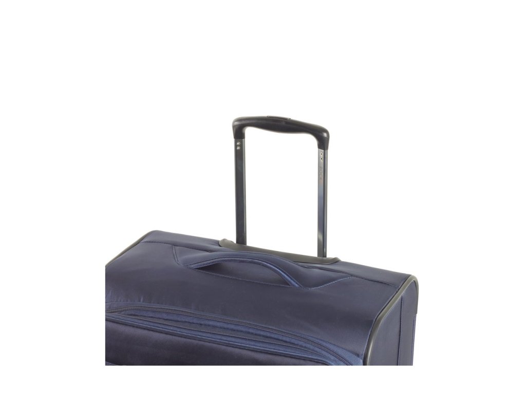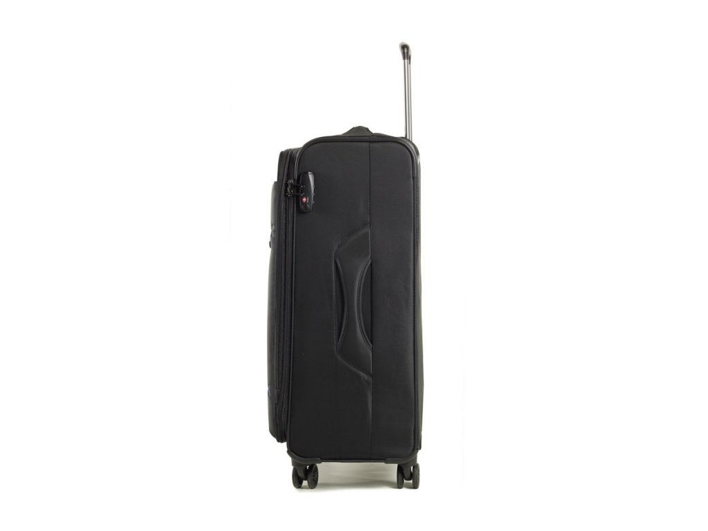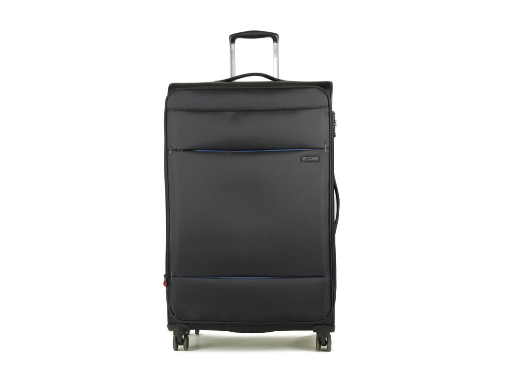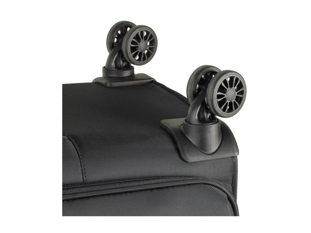 V přední části jsou umístěny dvě menší kapsy uzavíratelné zipem. Horní madlo je polstrované v barvě kufru. Tato velikost kufru nemá boční madlo. Celý pojízdný systém je umístěn uvnitř kufru pod textilní podšívkou, aby nedošlo k poškození systému při přepravě, a je opatřen čtyřmi dvojitými kolečky otočnými o 360°. Na vnitřní straně víka je kapsa na zip.