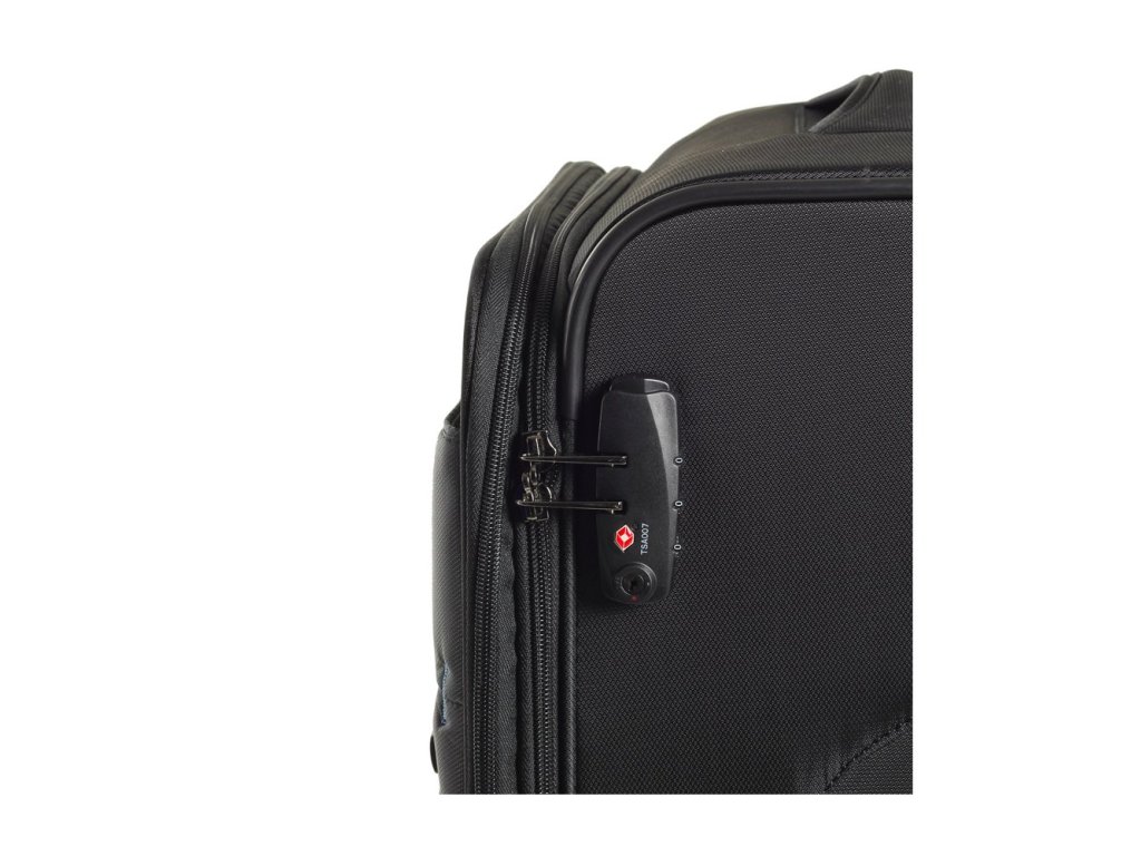 Kufr je uzavíratelný zipem. Oba jezdce zipu mají očko pro pohodlné nasazení kódového nebo klíčového zámku. TSA kódový zámek je součástí kufru.