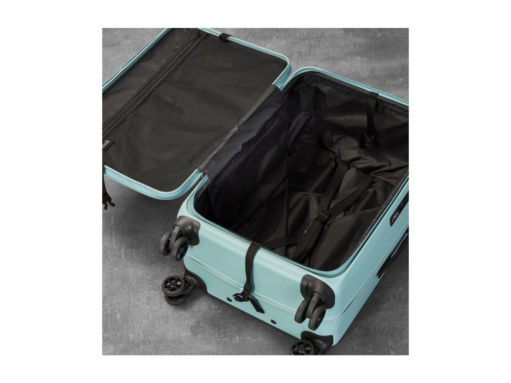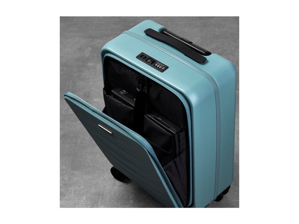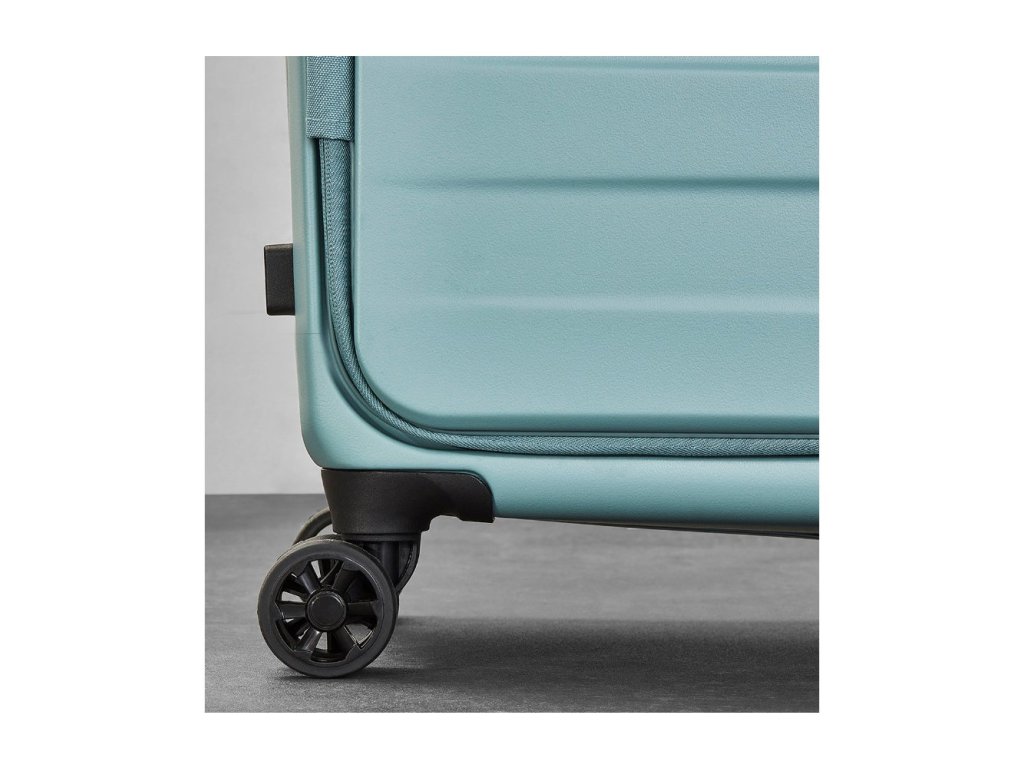 Kufr je uzavíratelný zipem, oba jezdce zipu se dají zapojit do TSA zapuštěného kódového zámku. Horní madlo je plastové. Tato velikost kufru nemá boční madlo. Kufr má lehký teleskopický výsuvný systém, polstrovanou kapsu na notebook a jistící popruhy. Celý pojízdný systém je umístěn uvnitř kufru pod textilní podšívkou, aby nedošlo k poškození systému při přepravě, a je opatřen čtyřmi dvojitými kolečky otočnými o 360°.