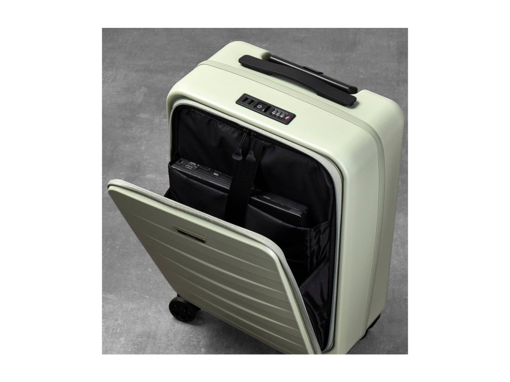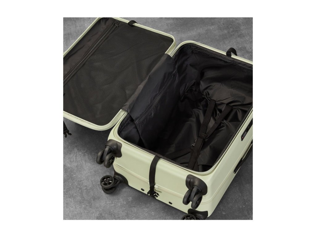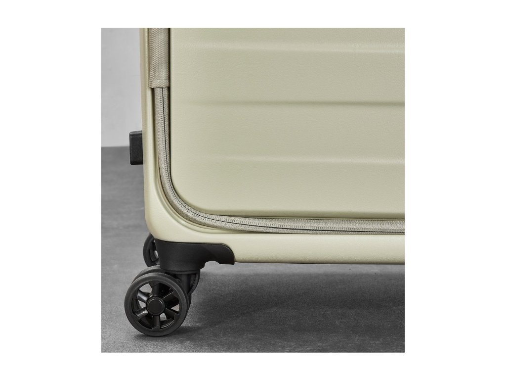 Kufr je uzavíratelný zipem, oba jezdce zipu se dají zapojit do TSA zapuštěného kódového zámku. Horní madlo je plastové. Tato velikost kufru nemá boční madlo. Kufr má lehký teleskopický výsuvný systém, polstrovanou kapsu na notebook a jistící popruhy. Celý pojízdný systém je umístěn uvnitř kufru pod textilní podšívkou, aby nedošlo k poškození systému při přepravě, a je opatřen čtyřmi dvojitými kolečky otočnými o 360°.