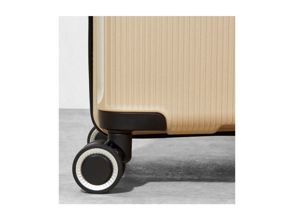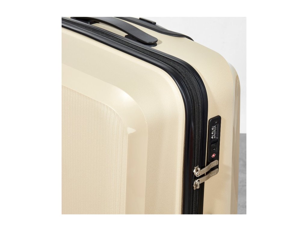 Kufr je uzavíratelný zipem, oba jezdce zipu se dají zapojit do TSA zapuštěného kódového zámku. Horní madlo je plastové. Kufr má lehký teleskopický výsuvný systém, vnitřní přepážku s kapsou a jistící popruhy.
