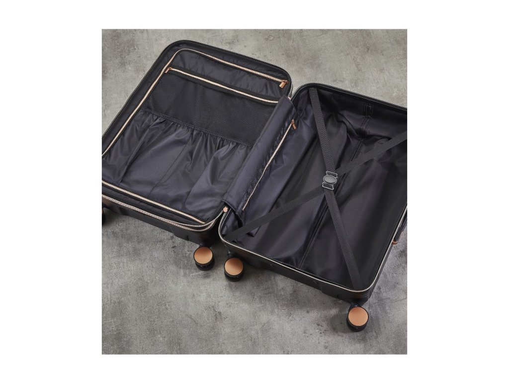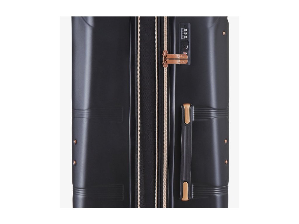 Cestovní kufr z kolekce ROCK Mayfair.Kufr je uzavíratelný zipem. Oba jezdce zipu se dají zapojit do TSA zapuštěného kódového zámku. Horní madlo je plastové. Tato velikost kufru nemá boční madlo. Celý pojízdný systém je umístěn uvnitř kufru pod textilní podšívkou, aby nedošlo k poškození systému při přepravě a je opatřen čtyřmi dvojitými kolečky otočnými o 360°. Kufr má lehký teleskopický výsuvný systém, vnitřní přepážku a jistící popruhy.Cena je uvedena za 1ks zobrazené velikosti S.