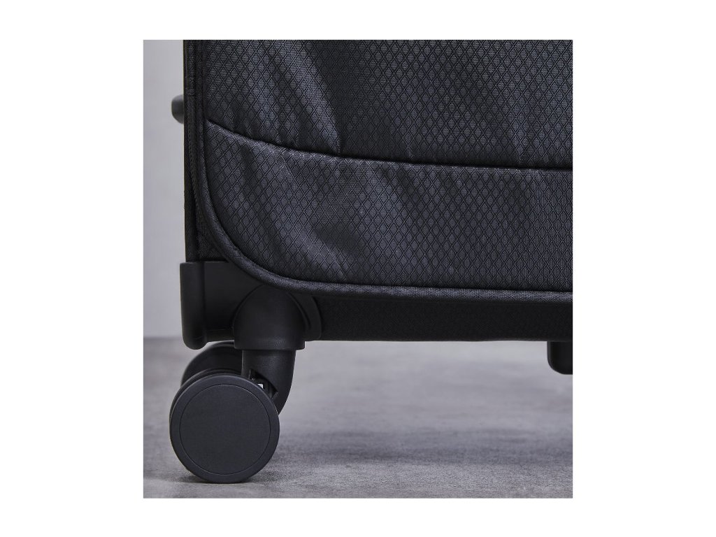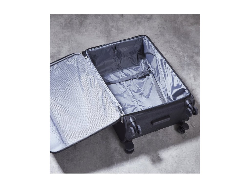Cestovní kufr z kolekce ROCK Rocklite.Kufr je uzavíratelný zipem. Oba jezdce zipu mají očka pro pohodlné nasazení kódového nebo klíčového zámku. V přední části jsou umístěny dvě kapsy uzavíratelné zipem. Horní madlo je plastové. Tato velikost kufru nemá boční madlo. Celý pojízdný systém je umístěn uvnitř kufru pod textilní podšívkou, aby nedošlo k poškození systému při přepravě a je opatřen čtyřmi dvojitými kolečky otočnými o 360°. Kufr má lehký teleskopický výsuvný systém, kapsu na vnitřní straně víka a jistící popruhy.Cena je uvedena za 1ks zobrazené velikosti S.