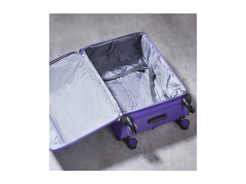 V přední části jsou umístěny dvě kapsy uzavíratelné zipem. Horní madlo je plastové. Tato velikost kufru nemá boční madlo. Celý pojízdný systém je umístěn uvnitř kufru pod textilní podšívkou, aby nedošlo k poškození systému při přepravě a je opatřen čtyřmi dvojitými kolečky otočnými o 360°. Kufr má lehký teleskopický výsuvný systém, kapsu na vnitřní straně víka a jistící popruhy.