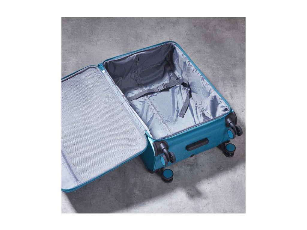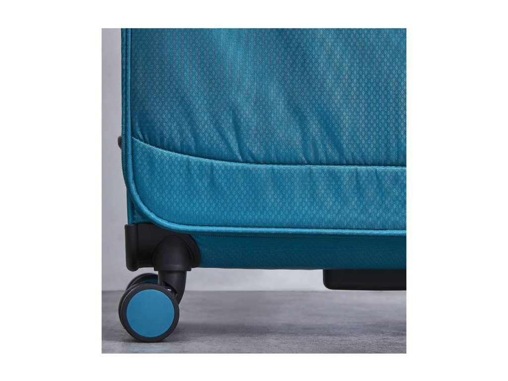 V přední části jsou umístěny dvě kapsy uzavíratelné zipem. Horní madlo je plastové. Tato velikost kufru nemá boční madlo. Celý pojízdný systém je umístěn uvnitř kufru pod textilní podšívkou, aby nedošlo k poškození systému při přepravě a je opatřen čtyřmi dvojitými kolečky otočnými o 360°. Kufr má lehký teleskopický výsuvný systém, kapsu na vnitřní straně víka a jistící popruhy.