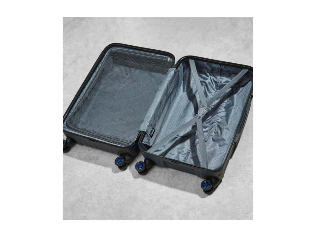 Kufr je uzavíratelný zipem. Oba jezdce zipu se dají zapojit do zapuštěného kódového zámku. Horní madlo je plastové. Celý pojízdný systém je umístěn uvnitř kufru pod textilní podšívkou, aby nedošlo k poškození systému při přepravě a je opatřen čtyřmi kolečky otočnými o 360°. Kufr má lehký teleskopický výsuvný systém, vnitřní přepážku a jistící popruhy.