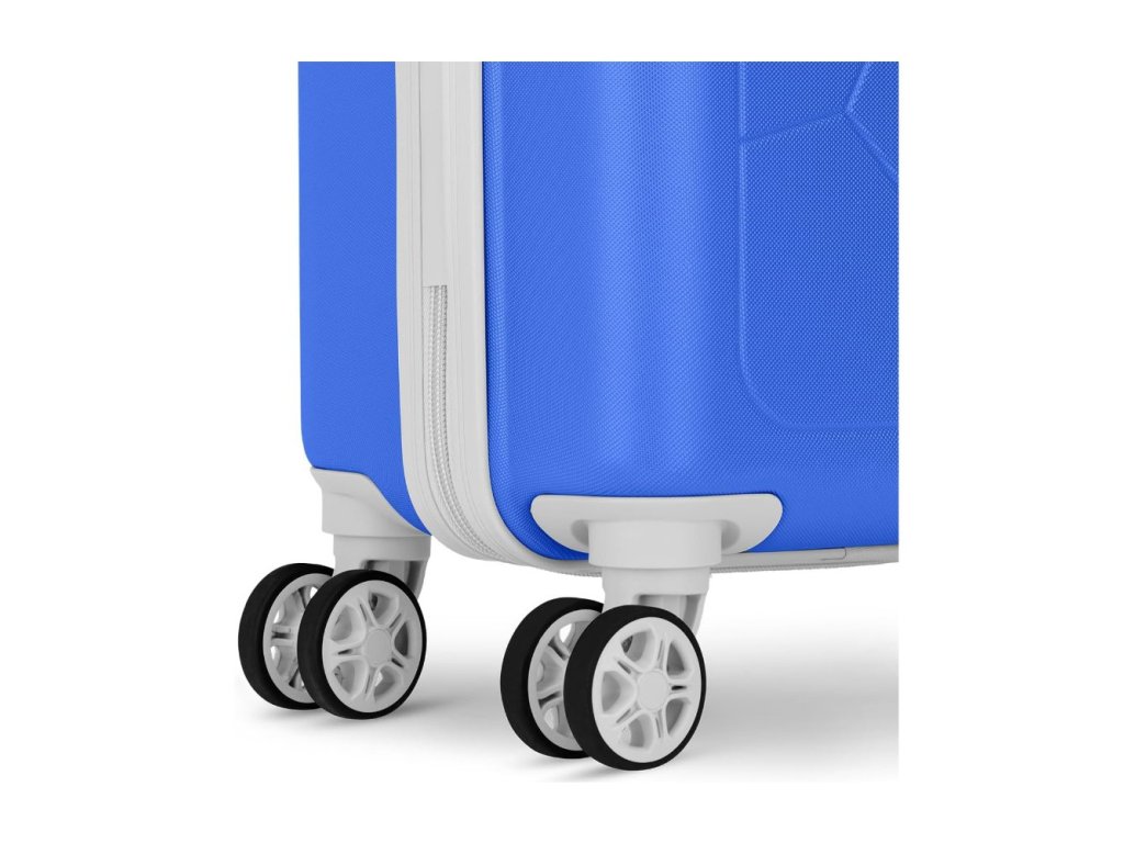 Kufry jsou extrémně lehké a odolné proti nárazu díky kvalitnímu materiálu ABS. Mají lehký výsuvný systém s nastavitelnou výškou ve více polohách, prostor na víku oddělený textilní přepážkou, jistící popruhy a kvalitní kolečka. Kufr je uzavíratelný zipem. Oba jezdce zipu se dají zapojit do kódového zámku.