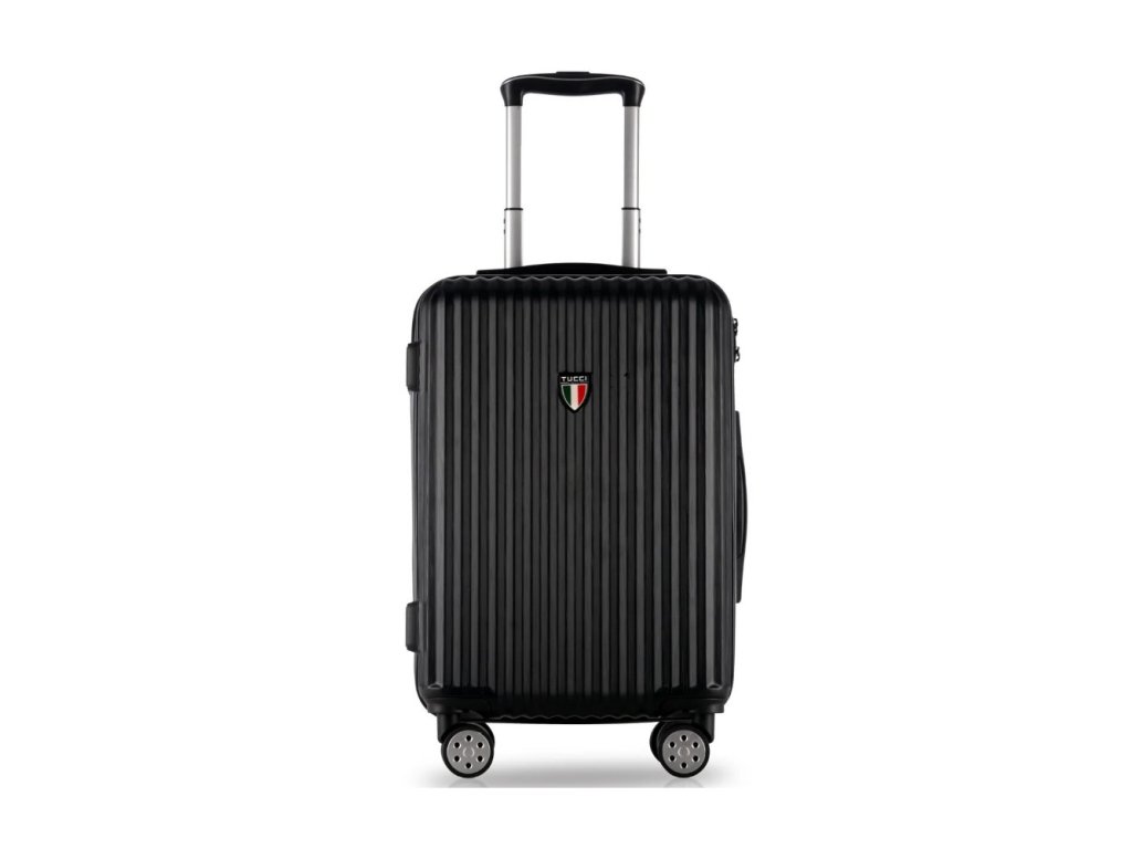 Cestovní kufr z kolekce TUCCI Banda.Kufr je uzavíratelný zipem. Oba jezdce zipu se dají zapojit do zapuštěného kódového zámku. Horní i boční madlo je plastové.Celý pojízdný systém je umístěn uvnitř kufru pod textilní podšívkou, aby nedošlo k poškození systému při přepravě a je opatřen čtyřmi dvojitými kolečky otočnými o 360°. Kufr má lehký teleskopický výsuvný systém, vnitřní přepážku a jistící popruhy.Cena je uvedena za 1ks zobrazené velikosti S.