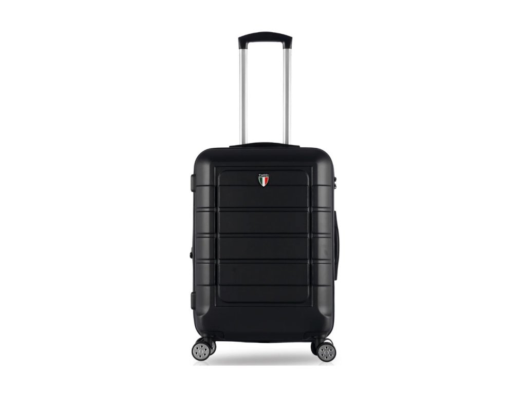 Cestovní kufr z kolekce TUCCI Console.Kufr je uzavíratelný zipem. Oba jezdce zipu se dají zapojit do zapuštěného kódového zámku. Horní i boční madlo je plastové.Celý pojízdný systém je umístěn uvnitř kufru pod textilní podšívkou, aby nedošlo k poškození systému při přepravě a je opatřen čtyřmi dvojitými kolečky otočnými o 360°. Kufr má lehký teleskopický výsuvný systém, vnitřní přepážku a jistící popruhy.Cena je uvedena za 1ks zobrazené velikosti S.