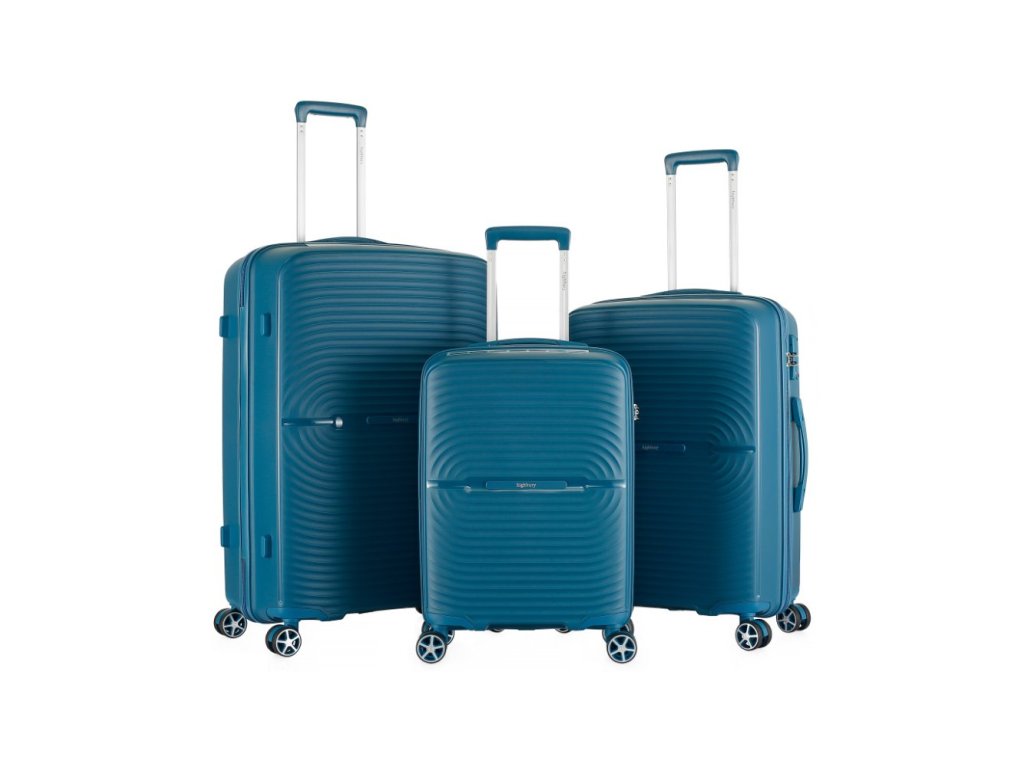 Celý pojízdný systém je umístěn uvnitř kufru pod textilní podšívkou, aby nedošlo k poškození systému při přepravě a je opatřen čtyřmi dvojitými kolečky otočnými o 360°.Cena je uvedena za 3ks sadu zobrazené velikosti L / M / S.• velikost L (large) / M (medium) / S (small)• materiál: Polypropylen• vnitřní rozměr: 69 x 48 x 26 cm / 59 x 42 x 23 cm / 50 x 36 x 19 cm• vnější rozměr: 76 x 50 x 28 cm / 66 x 45 x 25 cm / 55 x 38 x 20 cm = rozměry kufru včetně koleček a horního madla• objem: 86 l / 57 l / 34 l• hmotnost: 4,1 kg / 3,3 kg / 2,6 kg• doporučená nosnost 25 kg / 20 kg / 10 kg• (u vel. S teleskopický) výsuvný systém• 4 dvojitá kola pro velký komfort při užívání otočná o 360°• TSA kódový zámek TSA zámek (Transportation Security Administration)• nezbytný pro lety do USA, Austrálie, Japonska kde je letištní bezpečnostní služba oprávněna zkontrolovat obsah zavazadla i za použití násilí, pokud je uzamčeno.• TSA zámek tedy umožňuje odemčení a opětovné uzamčení vašeho zavazadla, aniž by hrozilo jeho poškození při kontrole, protože pracovník TSA je vybaven univerzálním „MASTER“ klíčem.