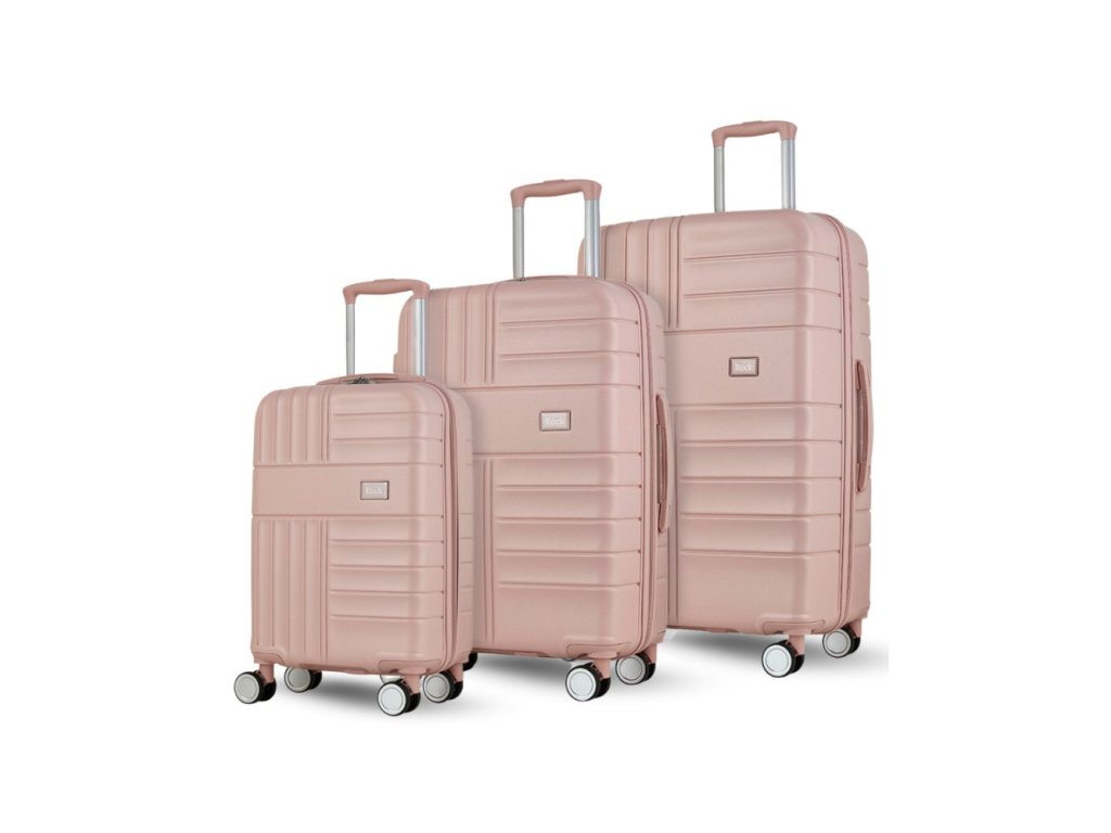 Kufry jsou uzavíratelné zipem. Oba jezdce zipu mají očko pro pohodlné nasazení kódového nebo klíčového zámku. Horní i boční madla jsou plastová. Nejmenší kufr (S) nemá boční madlo. Lehký výsuvný systém, prostor na víku oddělený textilní přepážkou, vnitřní kapsa a jistící popruhy.Celý pojízdný systém je umístěn uvnitř kufru pod textilní podšívkou, aby nedošlo k poškození systému při přepravě a je opatřen čtyřmi dvojitými kolečky otočnými o 360°.Cena je uvedena za 3ks sadu zobrazené velikosti L / M / S.