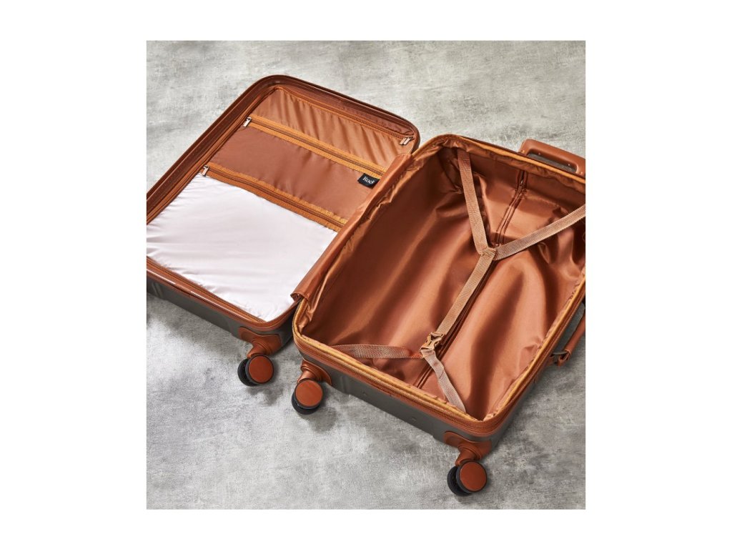 Kufry jsou uzavíratelné zipem. Oba jezdce zipu se dají zapojit do TSA zapuštěného kódového zámku. Celý pojízdný systém je umístěn uvnitř kufru pod textilní podšívkou, aby nedošlo k poškození systému při přepravě a je opatřen čtyřmi dvojitými kolečky otočnými o 360°. Kufr má lehký (u nejmenší velikosti kufru teleskopický)výsuvný systém, vnitřní přepážku a jistící popruhy.