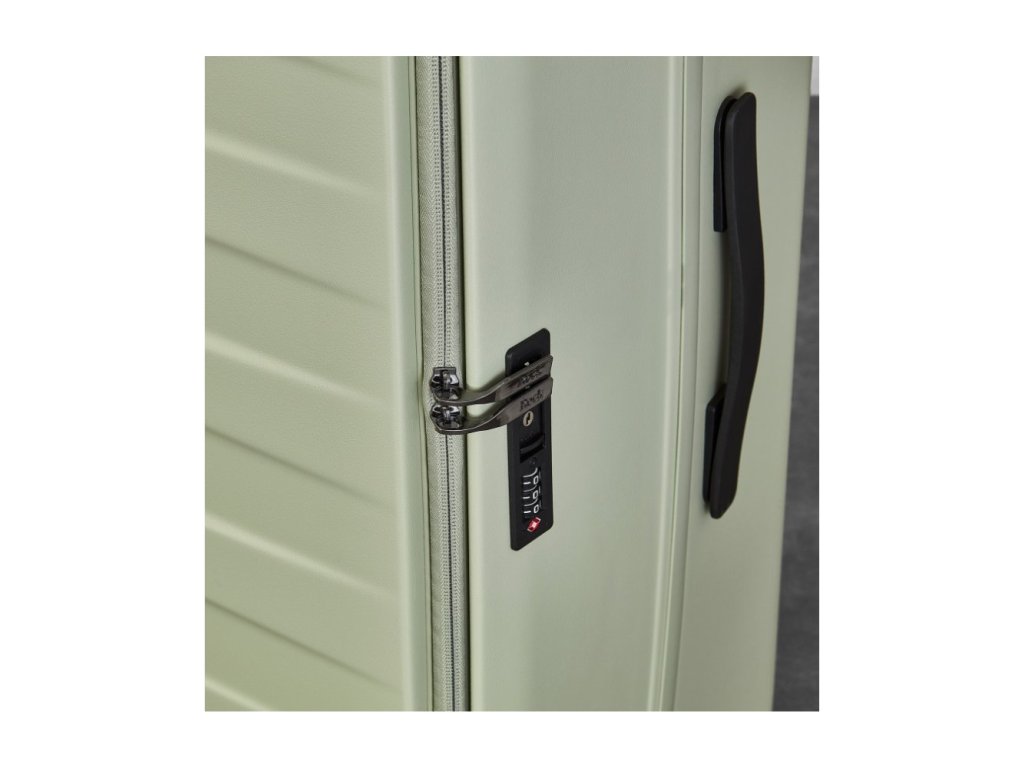 Kufry jsou uzavíratelné zipem, oba jezdce zipu se dají zapojit do TSA zapuštěného kódového zámku. Horní i boční madla jsou plastová. Kufry mají lehký výsuvný systém, kapsu na vnitřní straně víka a jistící popruhy. Celý pojízdný systém je umístěn uvnitř kufru pod textilní podšívkou, aby nedošlo k poškození systému při přepravě, a je opatřen čtyřmi dvojitými kolečky otočnými o 360°.