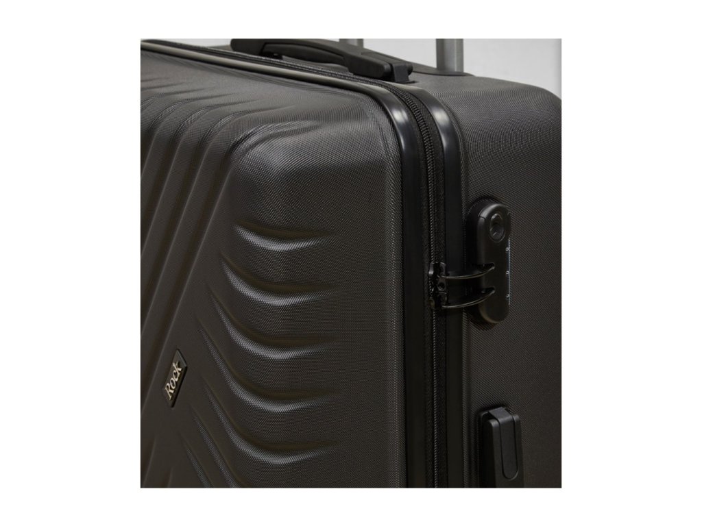Cestovní kufry z kolekce ROCK Santiago.Kufry jsou uzavíratelné zipem. Oba jezdce zipu se dají zapojit do zapuštěného kódového zámku. Horní i boční madla jsou plastová (nejmenší kufr nemá boční madlo). Celý pojízdný systém je umístěn uvnitř kufru pod textilní podšívkou, aby nedošlo k poškození systému při přepravě a je opatřen čtyřmi kolečky otočnými o 360°. Kufr má lehký (u nejmenší velikosti kufru je teleskopický)výsuvný systém, vnitřní přepážku a jistící popruhy.Cena je uvedena za 3ks sadu zobrazené velikosti L / M / S.