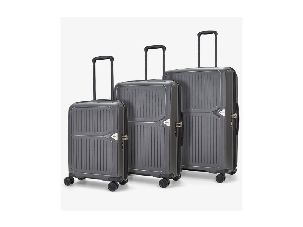 Sada cestovních kufrů ROCK Vancouver zahrnuje tři kufry velikostí S, M a L, které jsou vyrobené z extrémně pevného polypropylenu. Každý kufr je vybaven čtyřmi dvojitými kolečky s otáčením o 360°, integrovaným TSA zámkem a možností rozšíření objemu od 15 do 23 %. Díky tomu máte jistotu, že se přizpůsobí každé cestě – od krátkého víkendu až po dlouhou dovolenou.