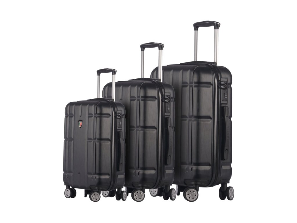 Sada cestovních kufrů z kolekce TUCCI Massa.Kufry jsou uzavíratelné zipem. Jezdce zipu se dají zapojit do zapuštěného kódového zámku. Horní i boční madla jsou plastová. U kufrů, kromě nejmenší velikosti S, lze pomocí druhého zipu zvětšit vnitřní objem.Celý pojízdný systém je umístěn uvnitř kufru pod textilní podšívkou, aby nedošlo k poškození systému při přepravě a je opatřen čtyřmi dvojitými kolečky otočnými o 360°. Kufry mají lehký výsuvný systém, vnitřní přepážku a jistící popruhy.