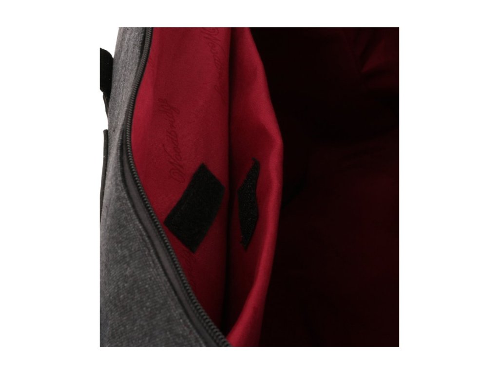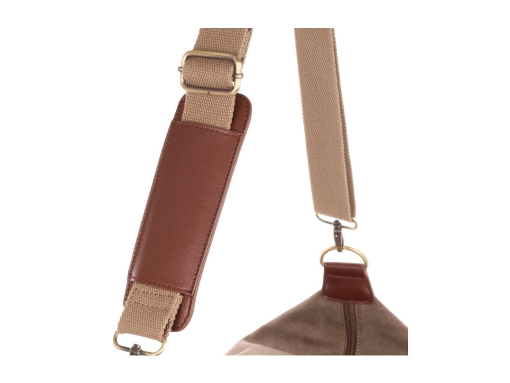 Hlavní prostor je uzavíratelný zipem. Kromě hlavního prostoru má taška dvě přední malé kapsy. Taška má nastavitelný odnímatelný popruh přes rameno.