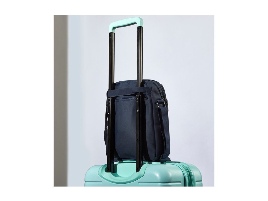 Tato taška má dvě hlavní přihrádky uzavíratelné zipem. Kromě hlavního prostoru má taška malou přední kapsu a jednu zadní. Na zadní straně tašky je umístěn popruh sloužící jako držák na výsuvné madlo cestovního kufru. Taška má nastavitelný popruh přes rameno.