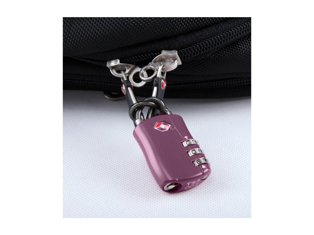 Bezpečnostní TSA kódový zámek ROCK na zipová zavazadla – umožňuje letištním kontrolorům, kteří mají speciální „MASTER“ klíč od všech TSA zámků, vaše zavazadlo v případě nejasností otevřít a zase uzavřít bez toho, aby tento zámek zničili.