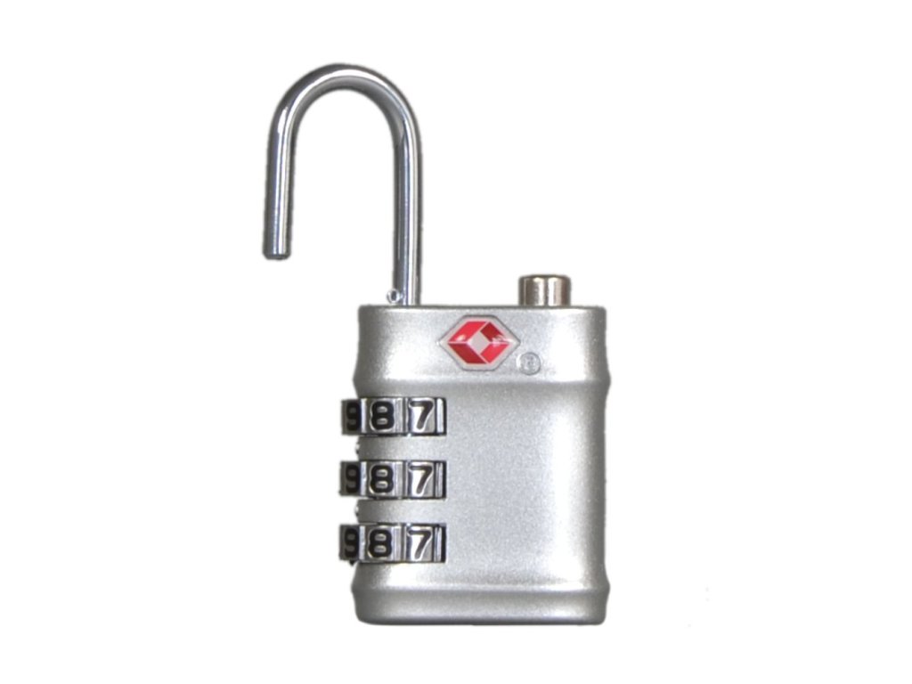 Bezpečnostní TSA kódový zámek ROCK na zipová zavazadla – umožňuje letištním kontrolorům, kteří mají speciální „MASTER“ klíč od všech TSA zámků, vaše zavazadlo v případě nejasností otevřít a zase uzavřít bez toho, aby tento zámek zničili.